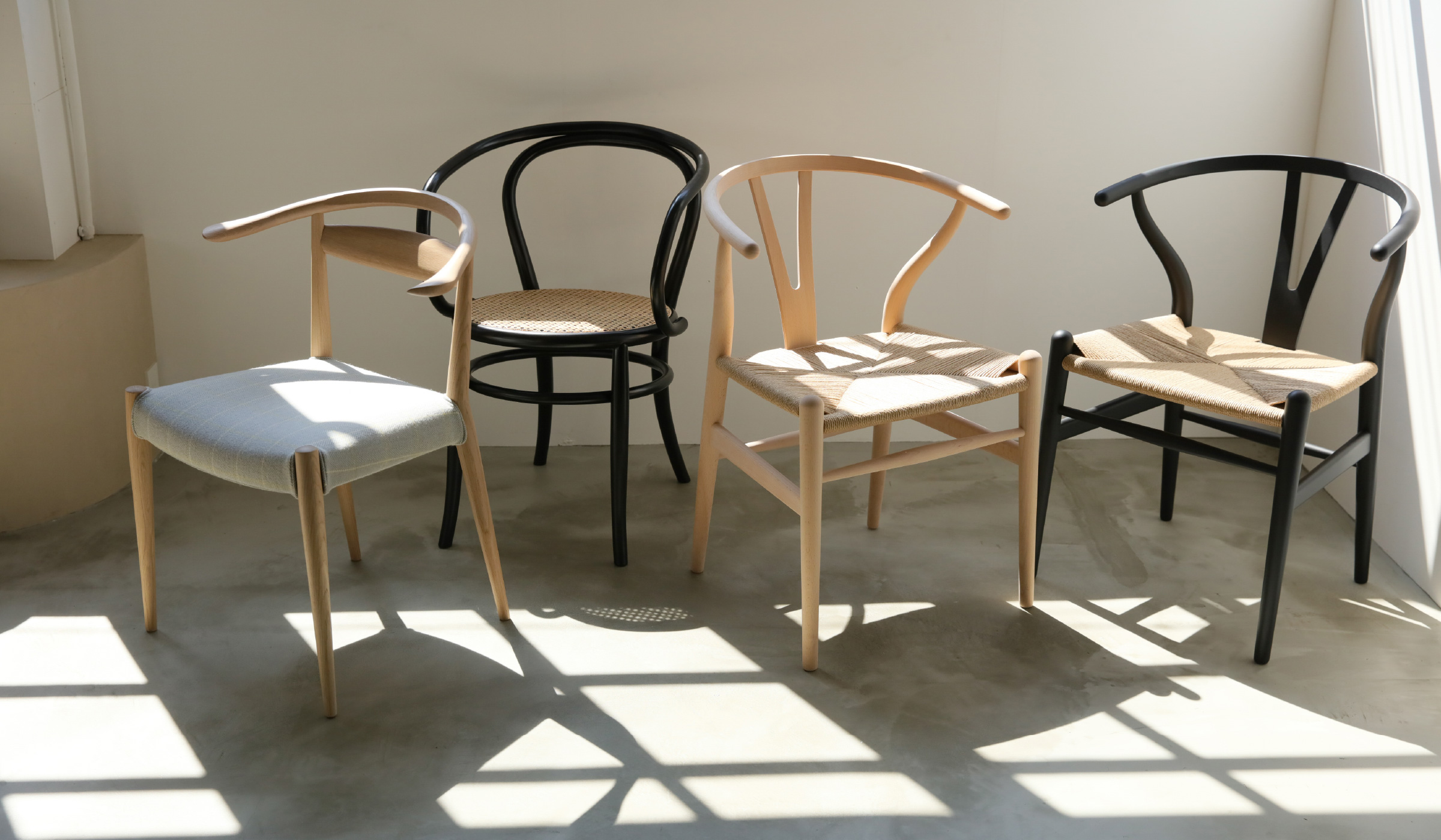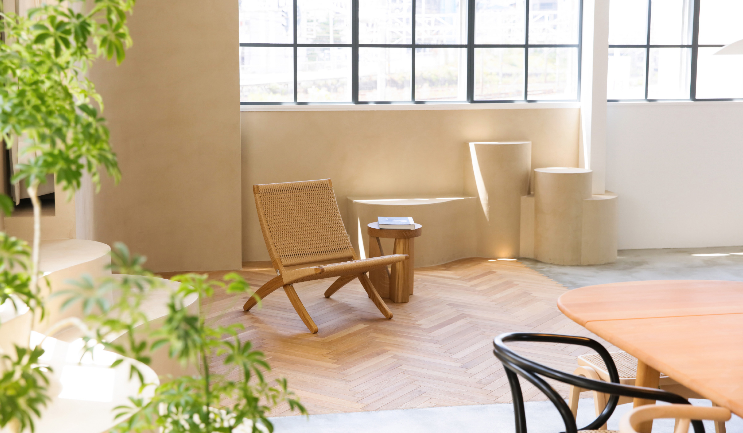 柔らかな曲線と4種の壁、2種の床、そして名作の家具. 。