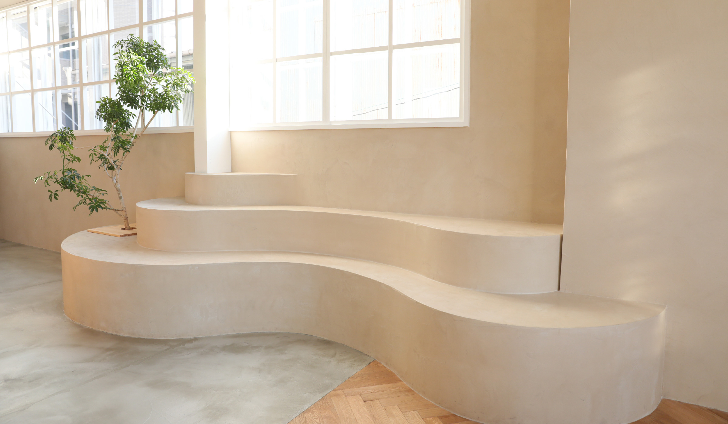 柔らかな曲線と4種の壁、2種の床、そして名作の家具. 。